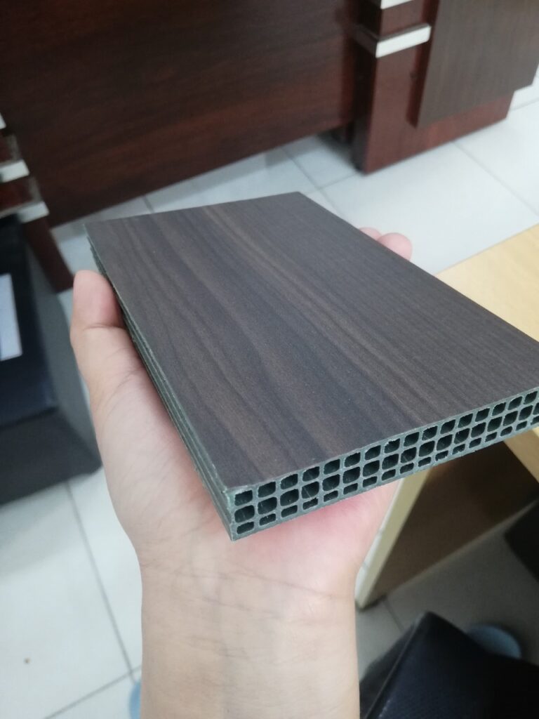Tấm nhựa Eco được phủ lên lớp film vân gỗ phù hợp với nhiều lựa chọn của khách hàng